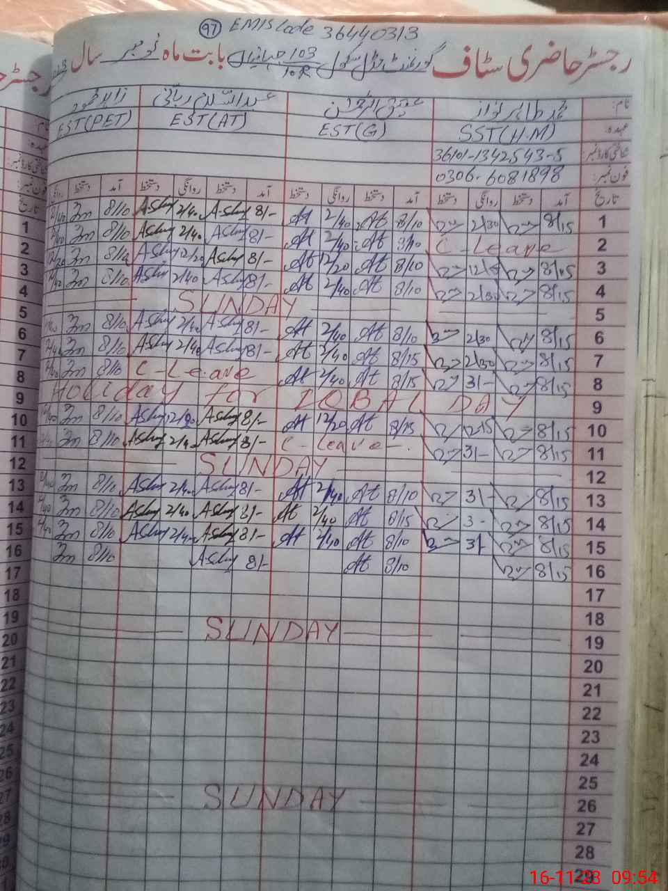 | Name: MTa**** Na**** Designation: (School Headmaster's/Headmistress's) SST GENERAL Phone/Cell Number: 03**** |