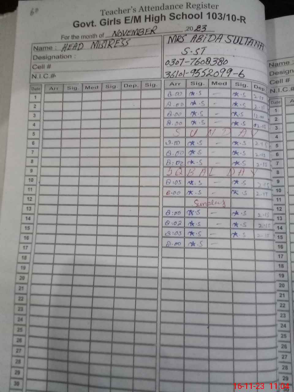 | Name: Ab**** Su**** Designation: (School Headmaster's/Headmistress's) Hm Phone/Cell Number: 03**** |