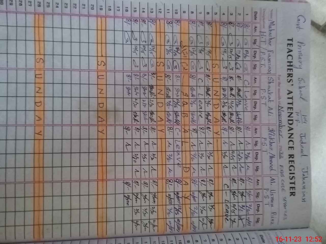| Name: MU**** RA**** Designation: (School Headmaster's/Headmistress's) PST Phone/Cell Number: 03**** |