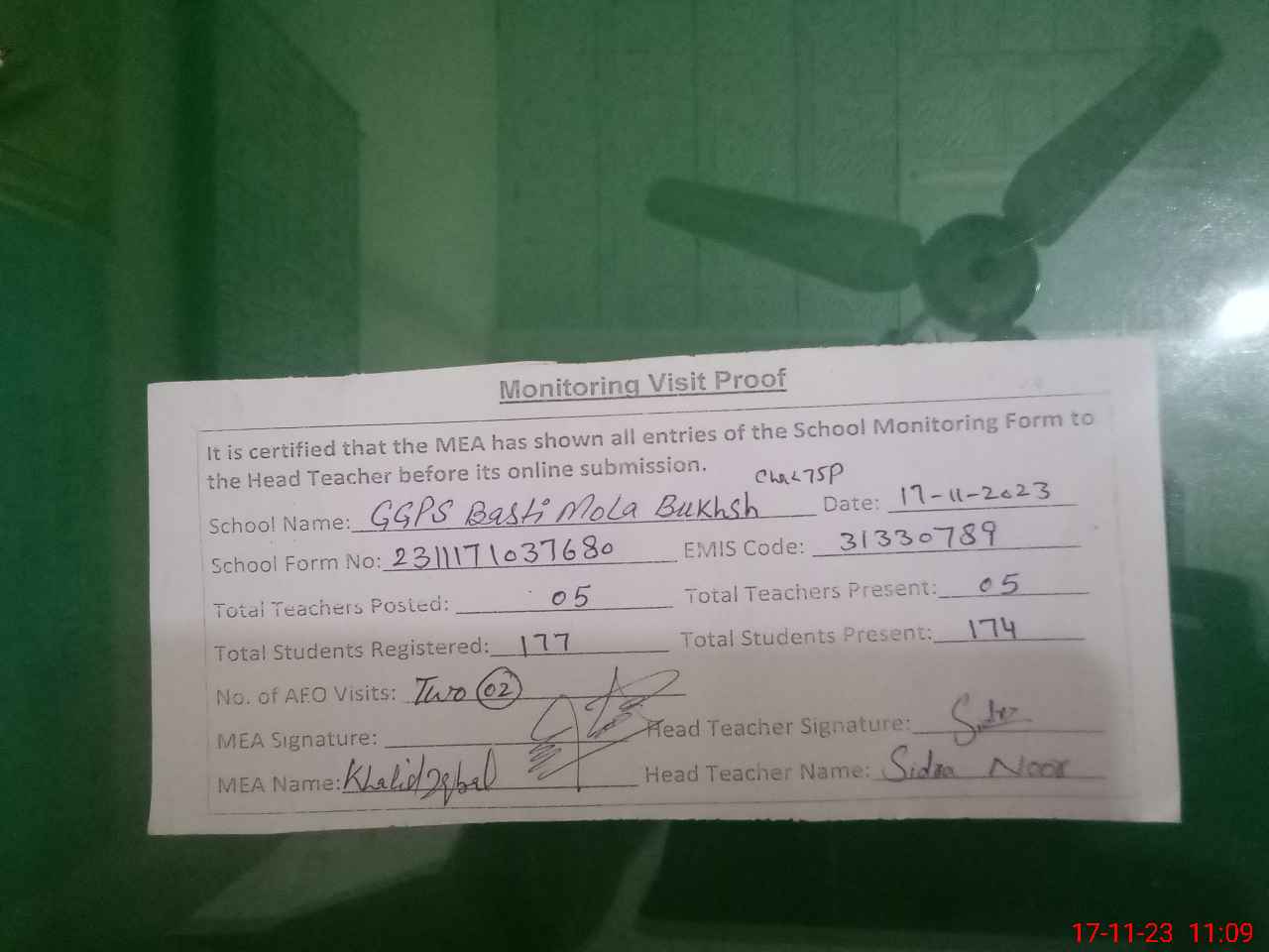 | EMIS Code: 31330789 | Name of School: GGPS BASTI MOLA BAKHSH | |||