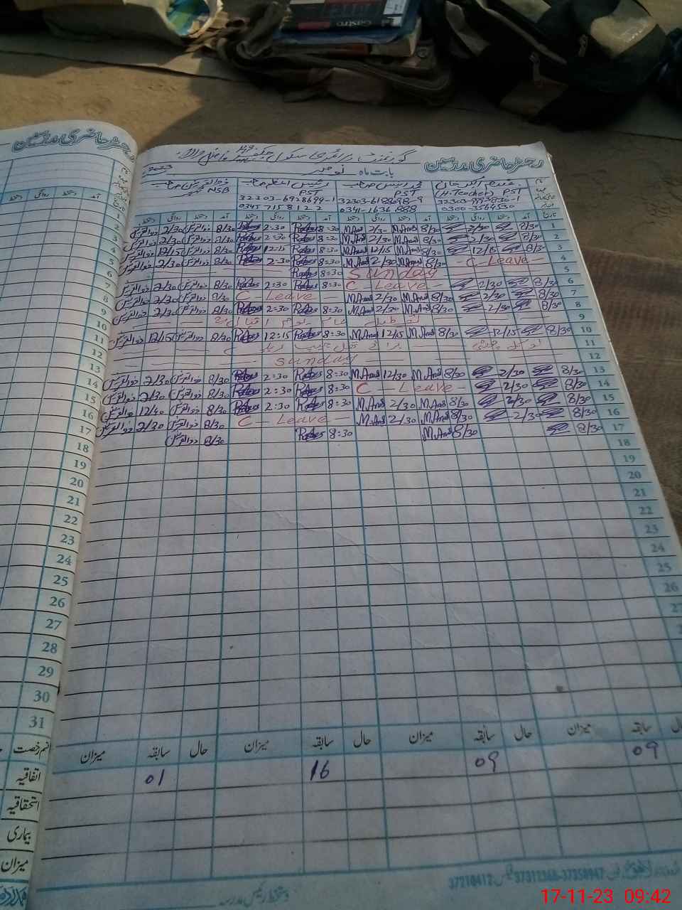 | CNIC | Full Name | Designation | R/C | Absence During Last Calender Month |
