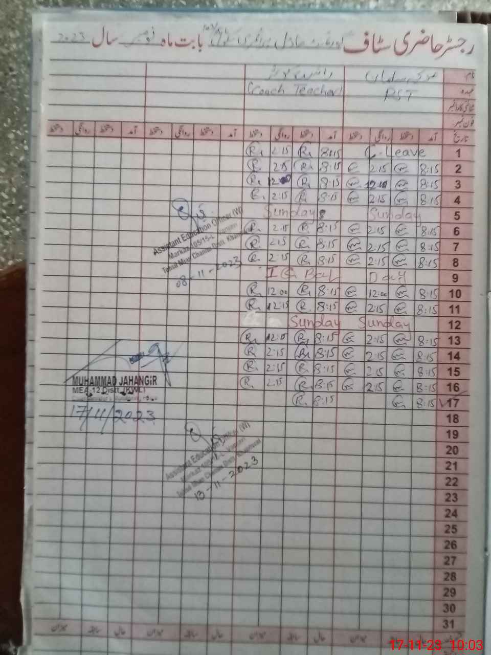 | Remarks (Use Separate Page if Required): ZAKIA PARVEEN PST HAS BEEN EXPIRED ON 01 APRIL 2023 BUT HER NAME IS STILL EXIST IN PMIU LIST MEA TAB LIST SCHOOL IS CONSOLIDATED GIRLS PORTION FOUND LOCKED AND NOT IN USE NSB GRANTS AND FTF RECORDS ARE NOT MAINTAINED LESSON PLANS ARE NOT AVAILABLE RANDOM CLASS KATCHI IS NOW IN CLASS TWO | |||||
