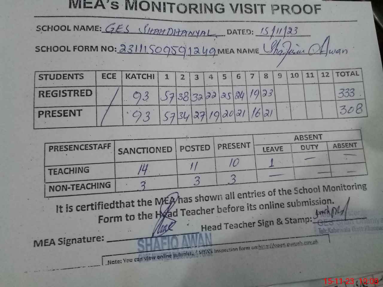 | EMIS Code: 36410317 | Name of School: GES SHAH DHANIYAL NAWAN SHEHR | |||