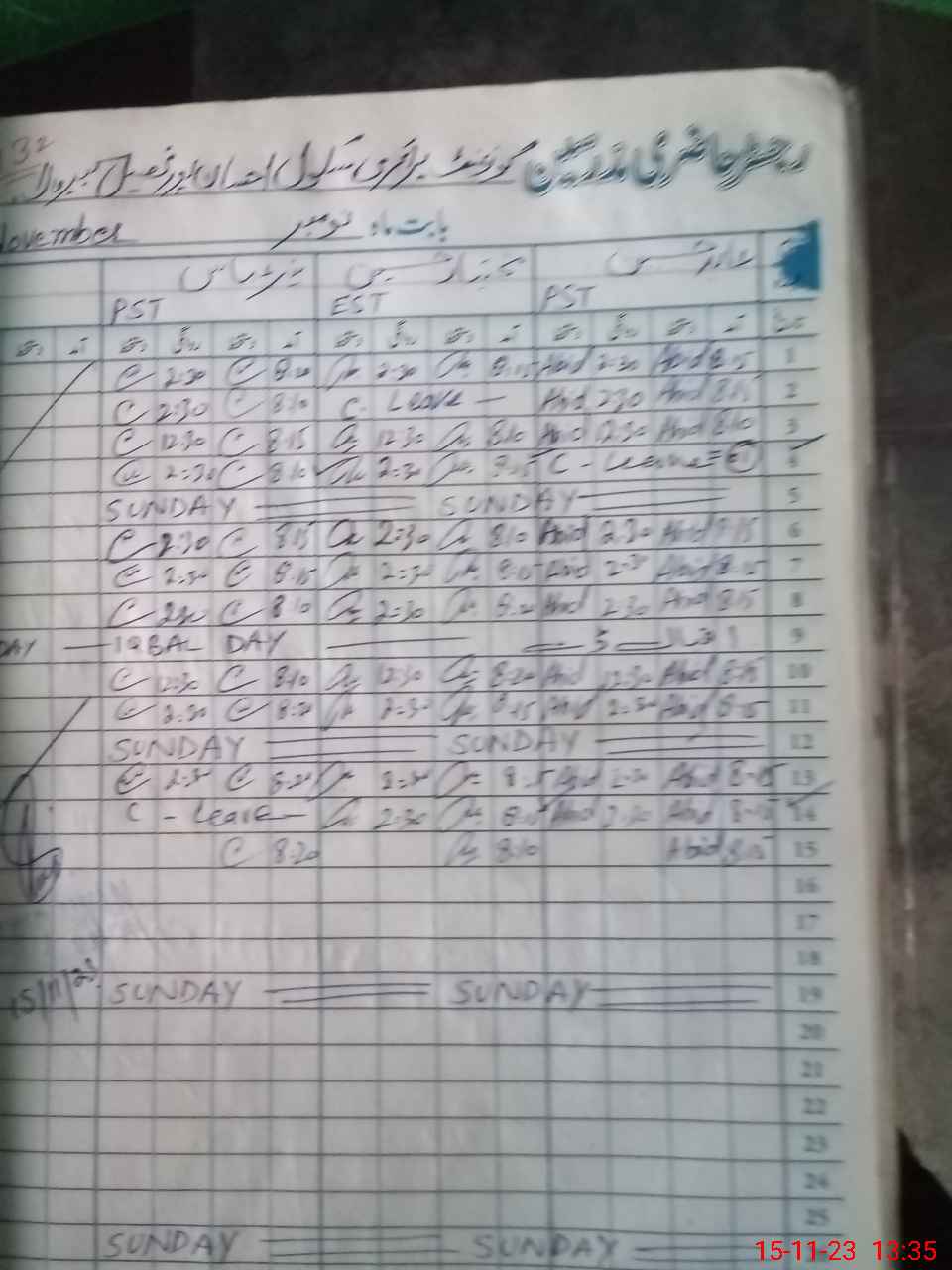 | CNIC | Full Name | Designation | R/C | Absence During Last Calender Month |