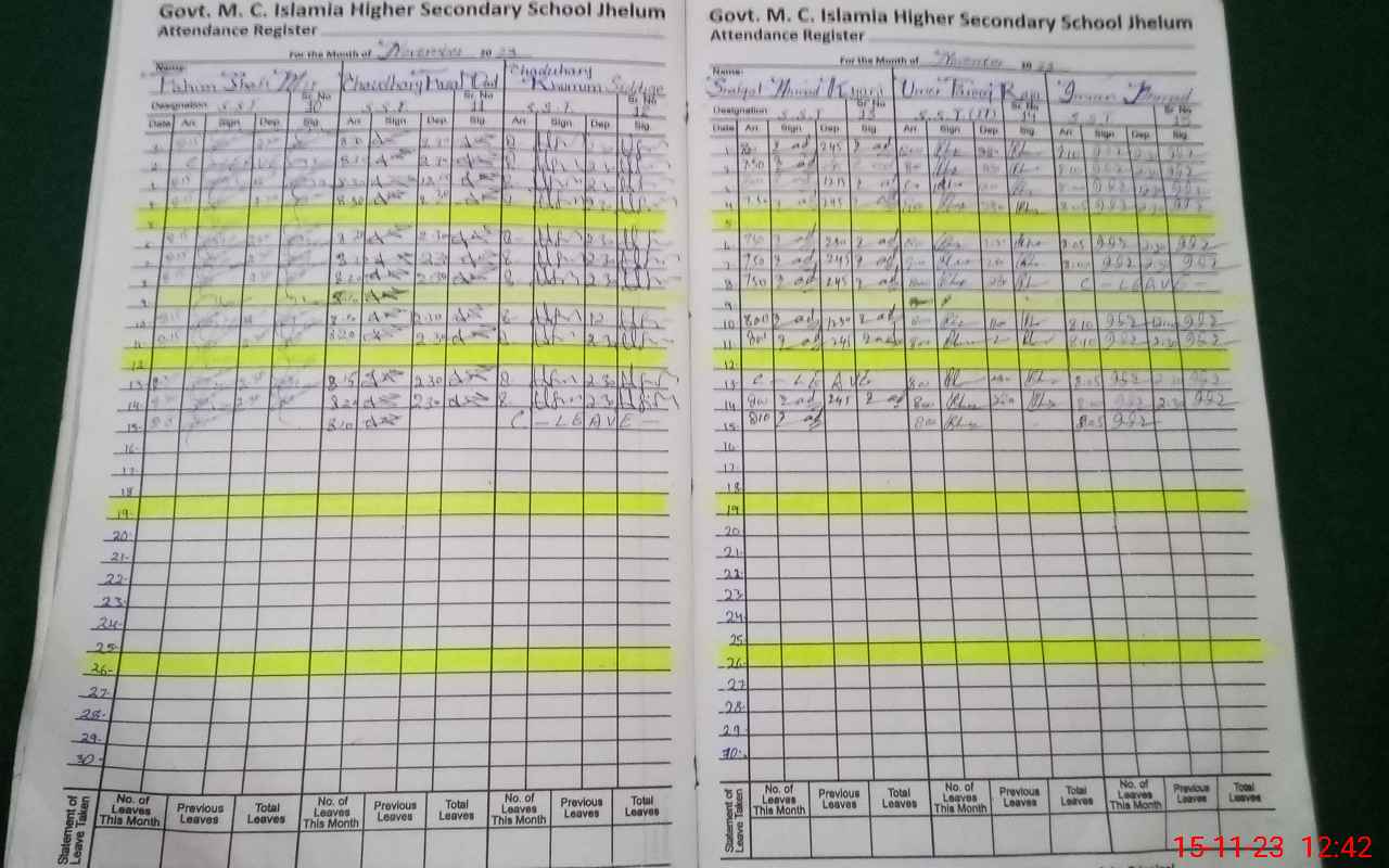 | CNIC | Full Name | Designation | R/C | Absence During Last Calender Month |