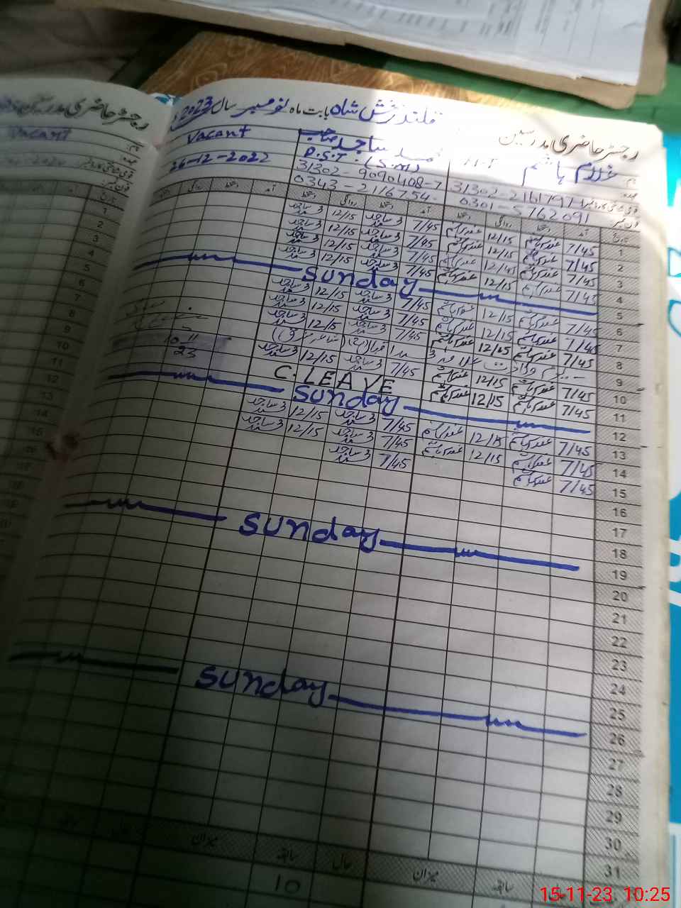 | CNIC | Full Name | Designation | R/C | Absence During Last Calender Month |