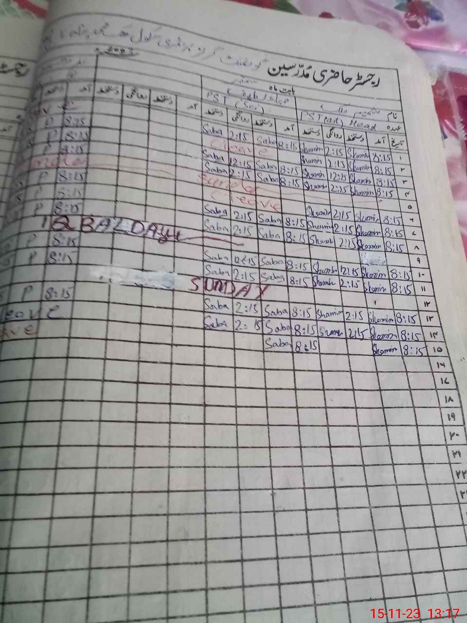 | CNIC | Full Name | Designation | R/C | Absence During Last Calender Month |