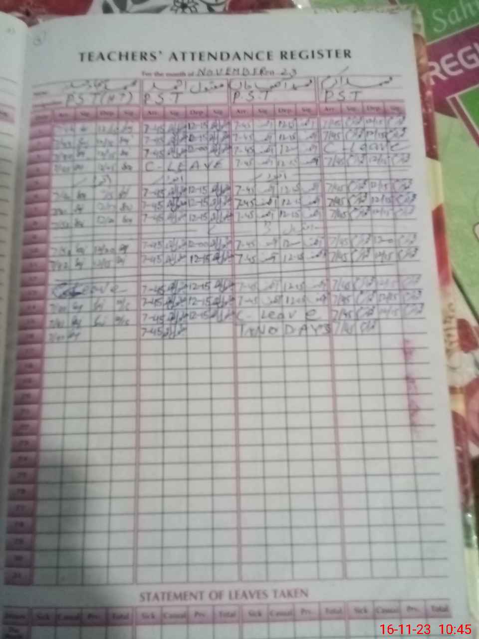 | 36**** | Mu**** As**** Kh**** | PST | Regular | 3 | 0 | 0 | 0 | 0 | 0 | 0 | 0 | 3 | Casual |