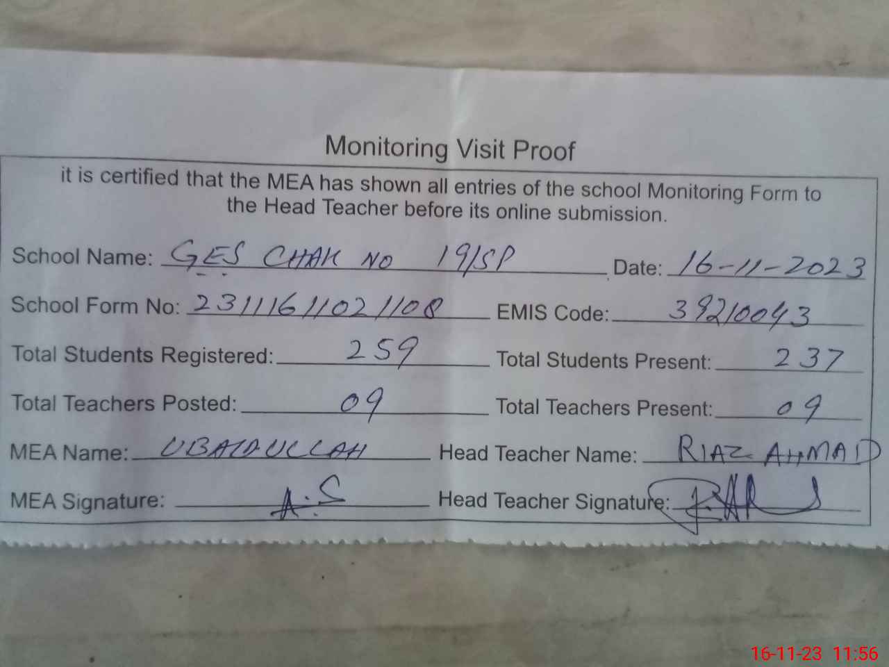| EMIS Code: 39210043 | Name of School: GES 19/SP PAKPATTAN | |||