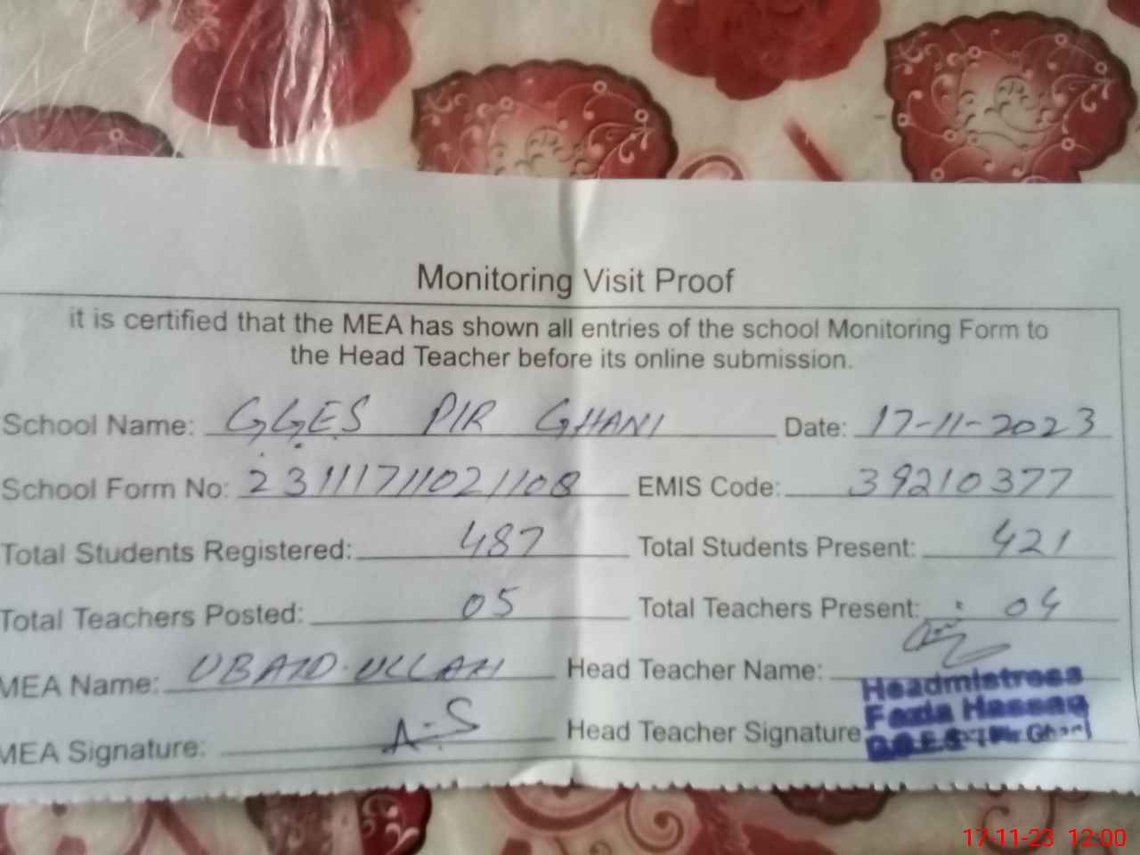 | EMIS Code: 39210377 | Name of School: GGES PIR GHANI | |||