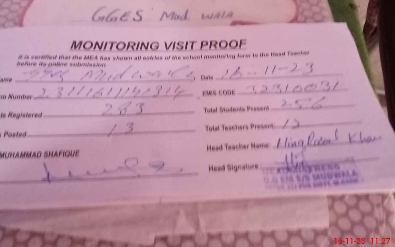 | EMIS Code: 32310031 | Name of School: GGES MUD WALA | |||
