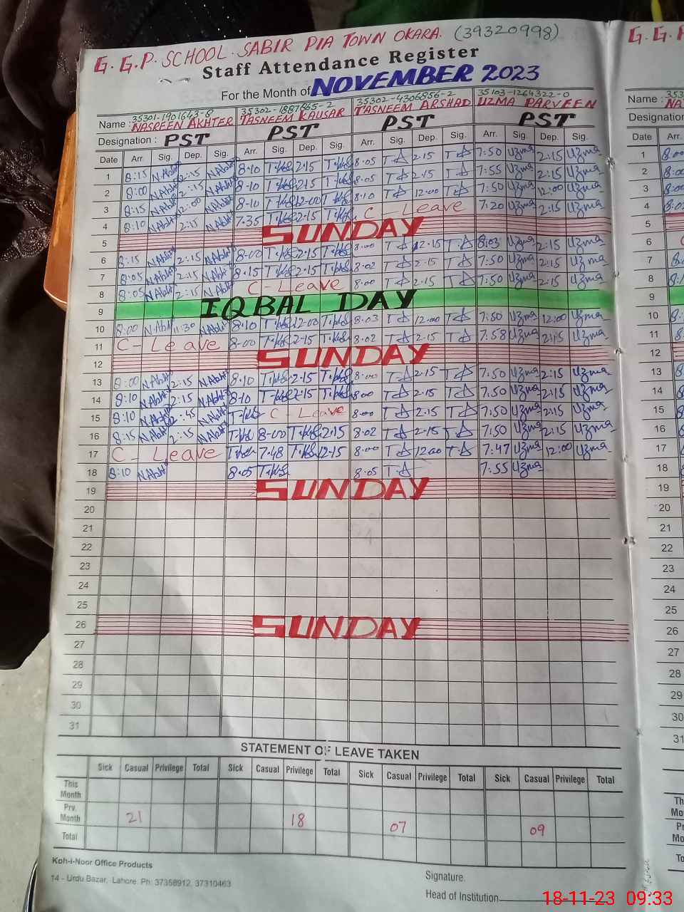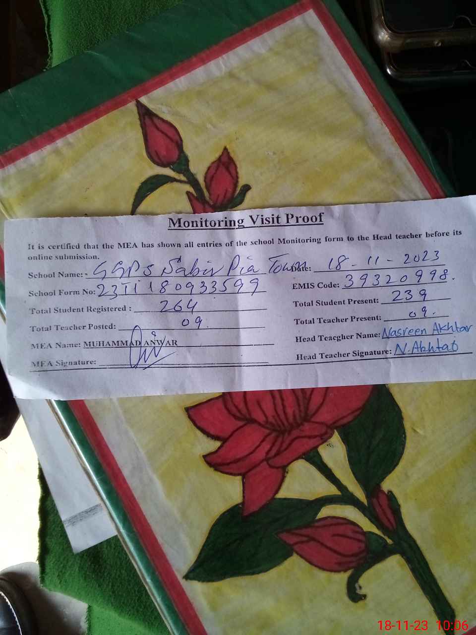 | EMIS Code: 39320998 | Name of School: GGPS SABIR PIA TOWN OKARA | |||