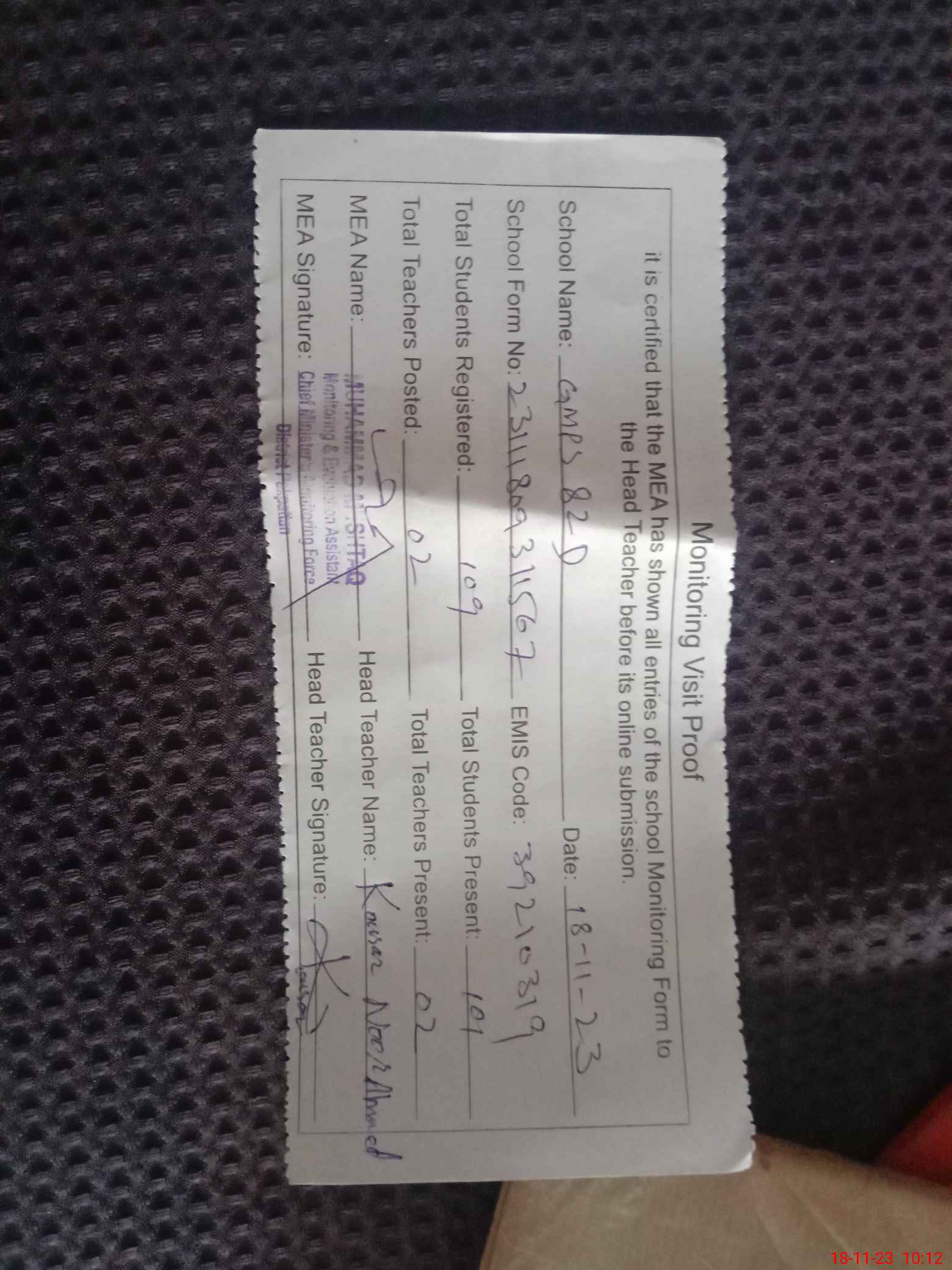 | EMIS Code: 39210319 | Name of School: GMPS 82 D | |||