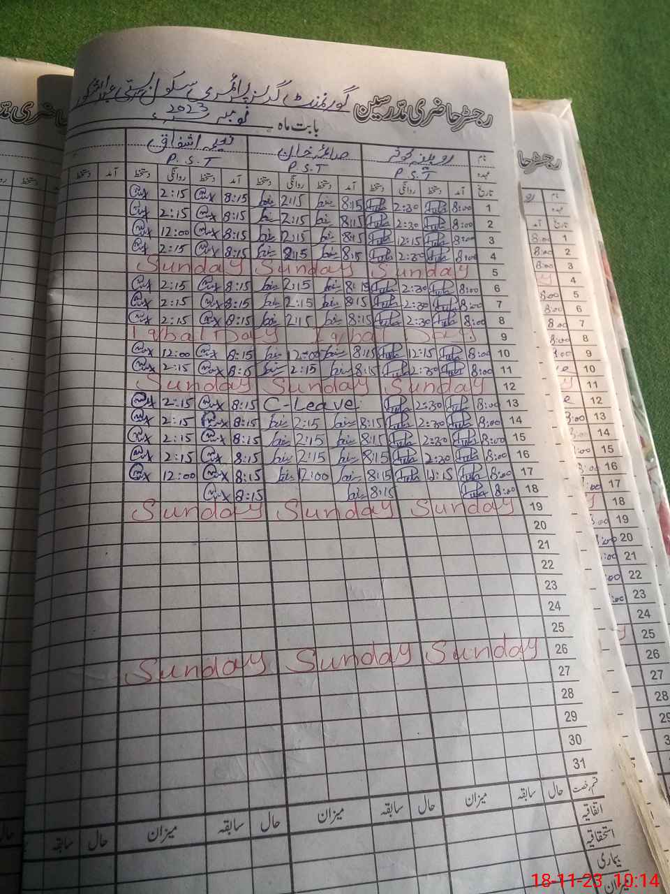| CNIC | Full Name | Designation | R/C | Absence During Last Calender Month |
