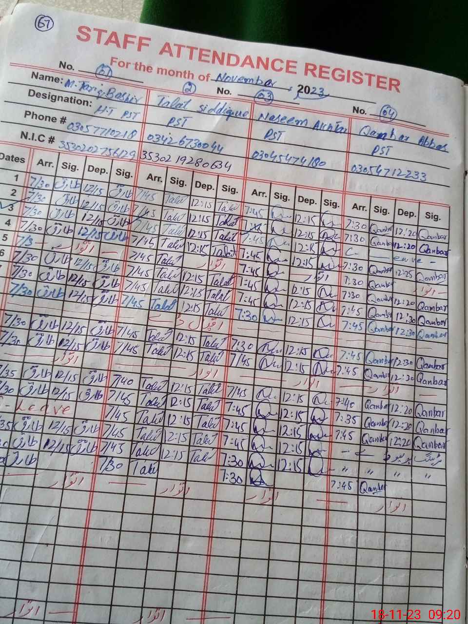 | Name: Mu**** Ha**** Designation: (School Headmaster's/Headmistress's) PST Phone/Cell Number: 03**** |