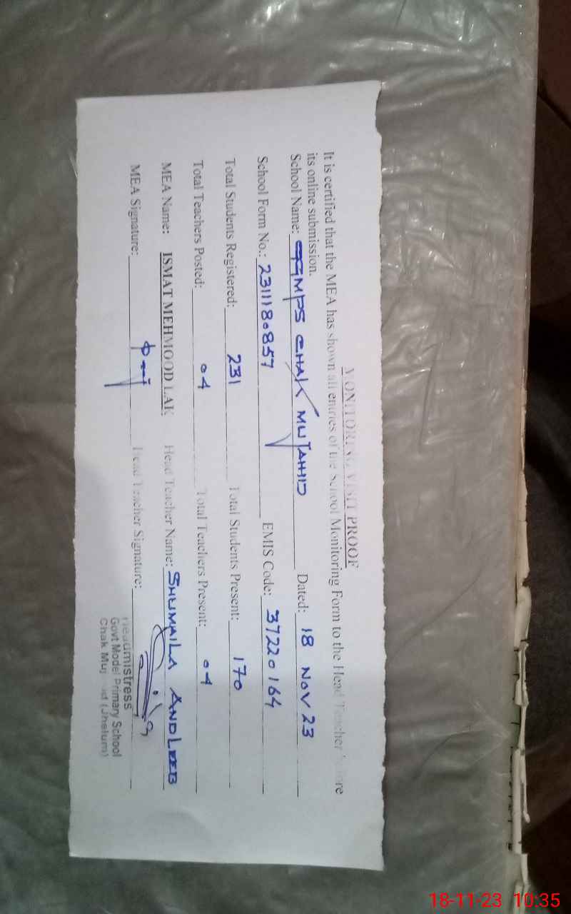 | EMIS Code: 37220164 | Name of School: GGMPS CHAK MUJAHID | |||