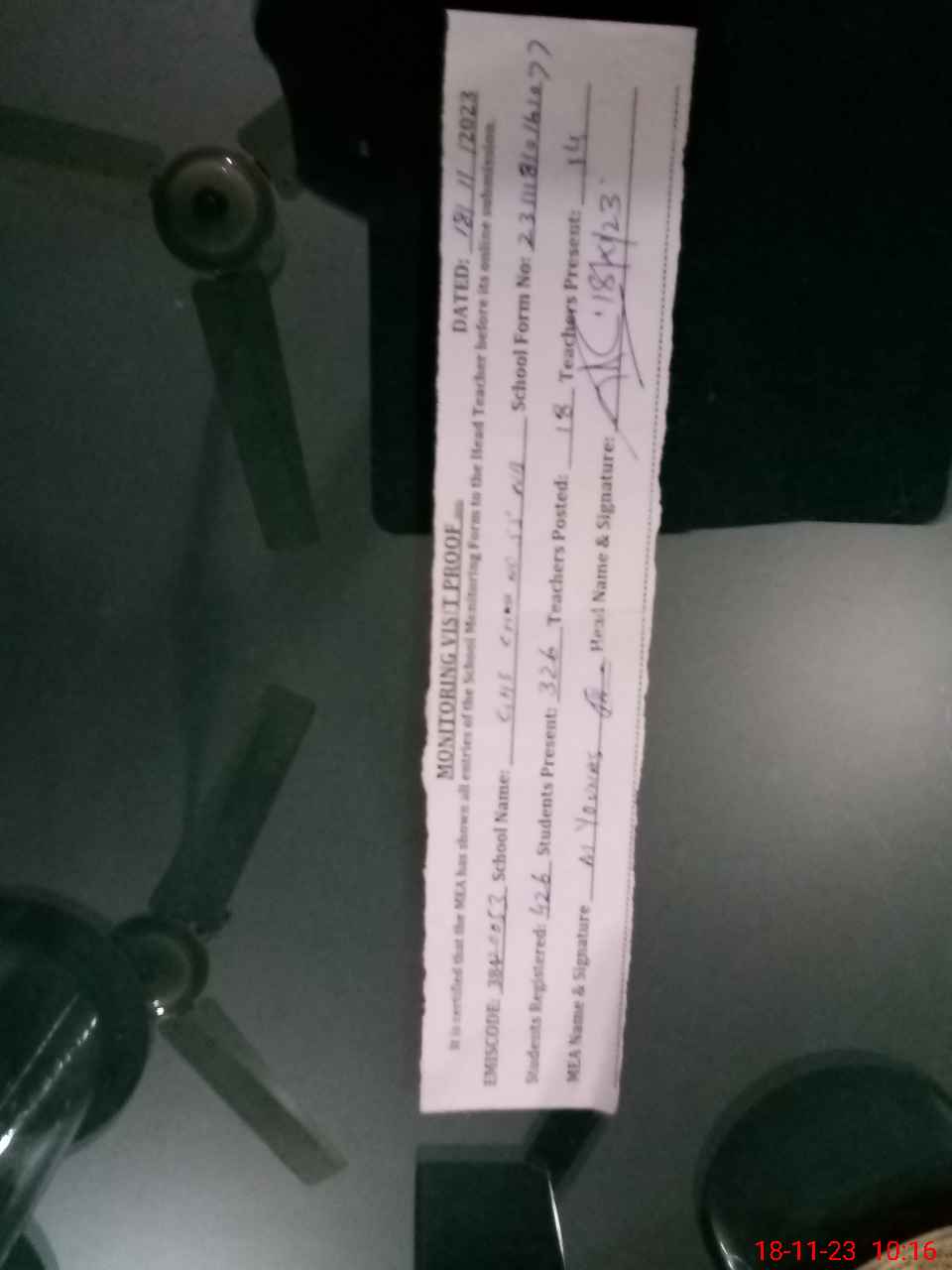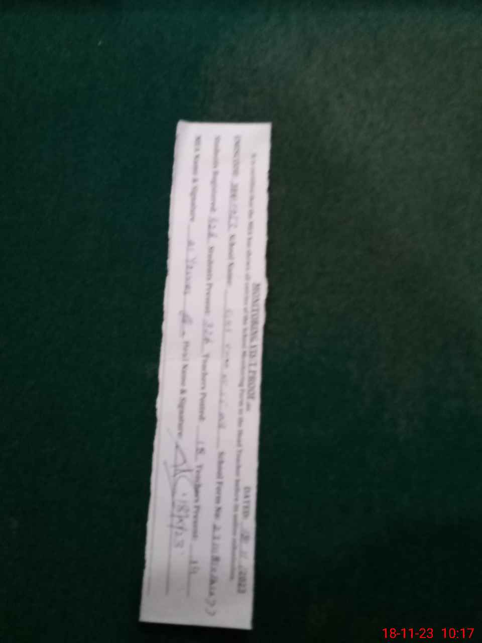 | Monitoring Date: 18-11-2023 | Start Time: 18-11-2023 09:47 AM | End Time: 18-11-2023 10:38 AM | Name of MEA: MU**** YO**** | |