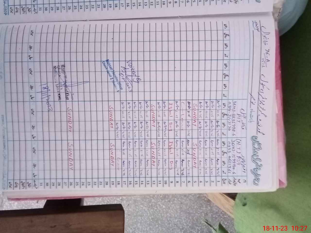 | Remarks (Use Separate Page if Required): NSB Register not available due to absence of head teacher LND practice on School Tab of class three not in practice Boundry wall having partial barbed wire and about five feet in height | |||||