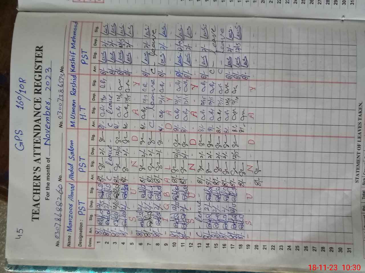 | Name: MA**** AH**** Designation: (School Headmaster's/Headmistress's) PST/PTC/JV Phone/Cell Number: 03**** |