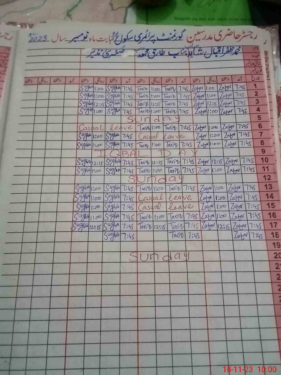 | Name: Mu**** Za**** Iq**** Designation: (School Headmaster's/Headmistress's) PST Phone/Cell Number: 03**** |