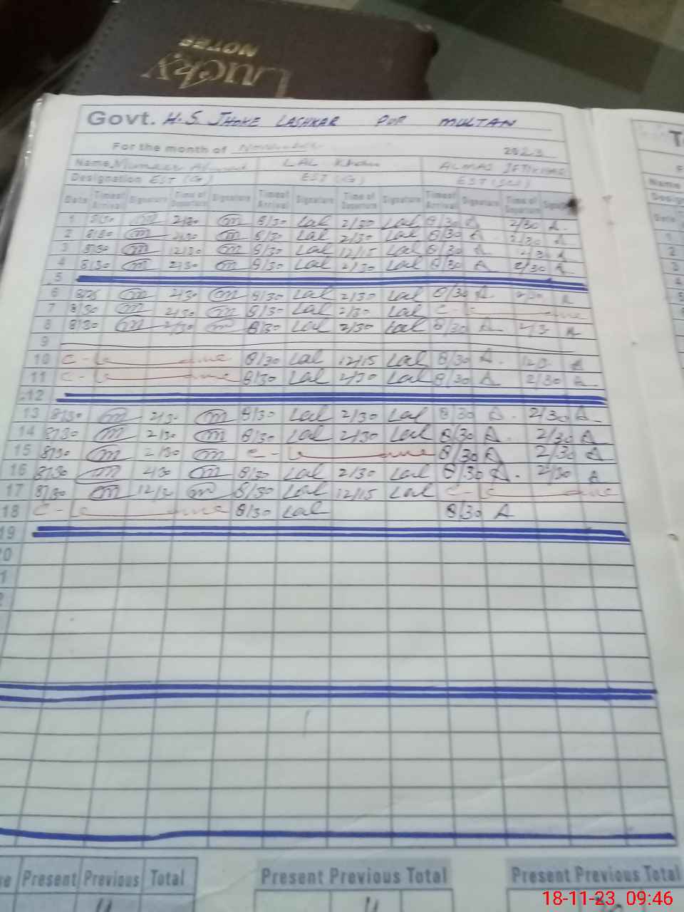 | CNIC | Full Name | Designation | R/C | Absence During Last Calender Month |