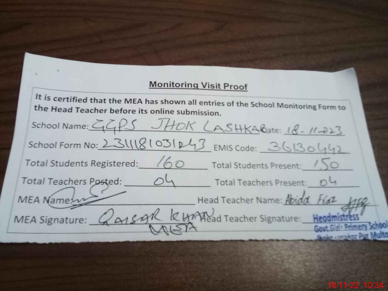 | EMIS Code: 36130442 | Name of School: GGPS JHOK LASHKAR PUR | |||