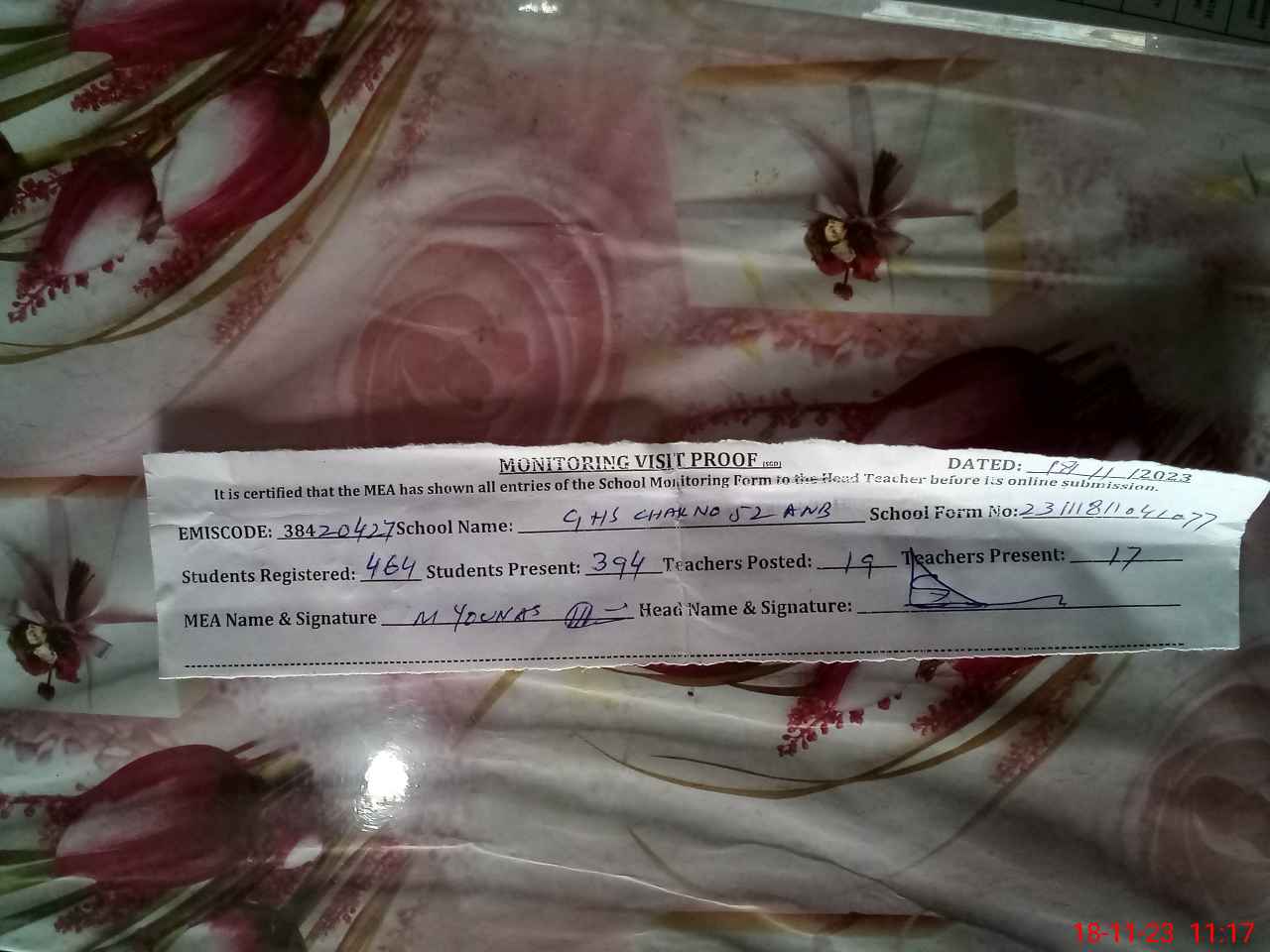| EMIS Code: 38420427 | Name of School: GHS CHAK NO.52 ANB | |||