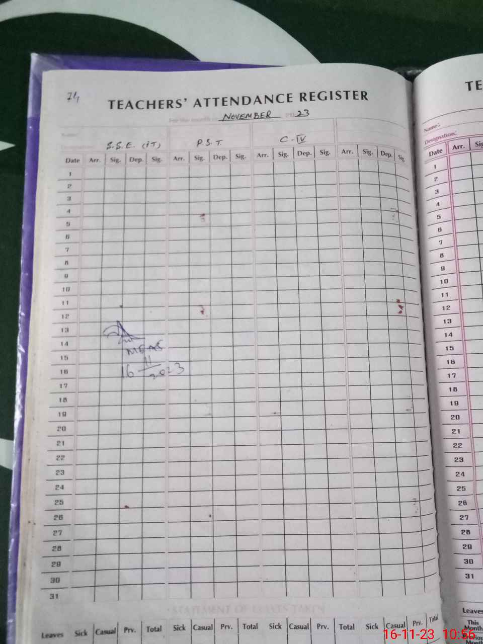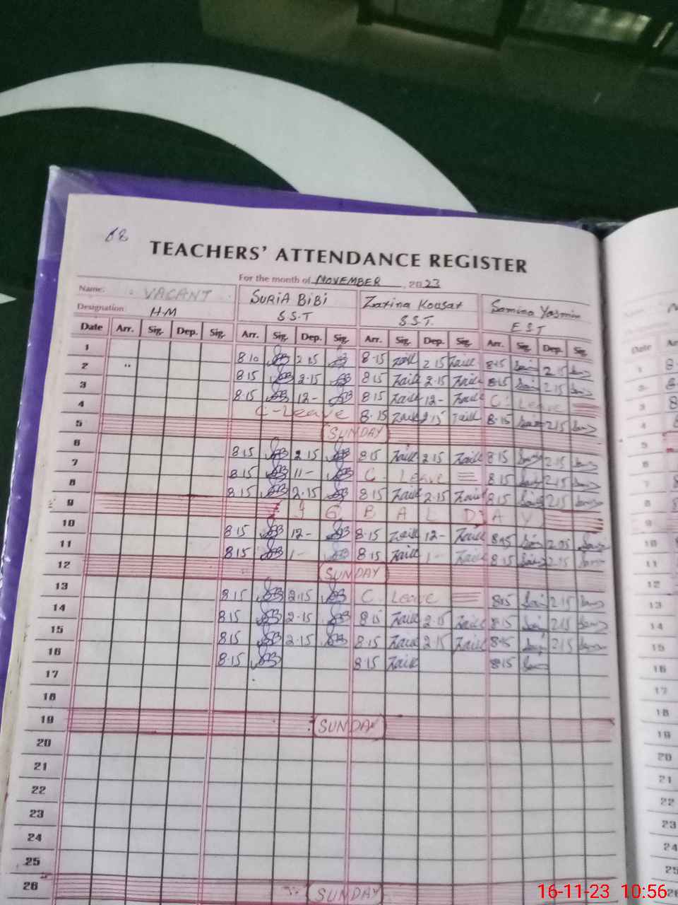 | CNIC | Full Name | Designation | R/C | Absence During Last Calender Month |