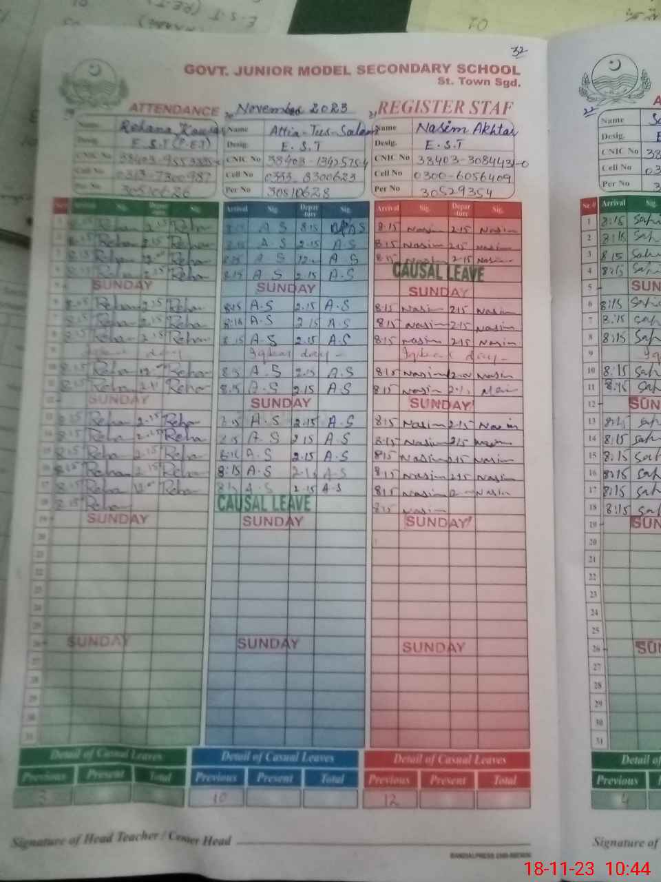 | CNIC | Full Name | Designation | R/C | Absence During Last Calender Month |