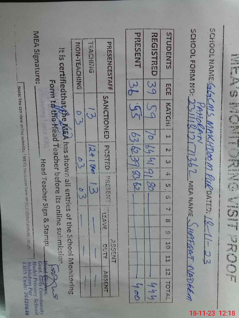 | EMIS Code: 36420649 | Name of School: GGCMS MAKHDOOM PUR | |||