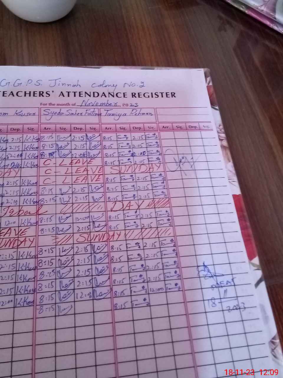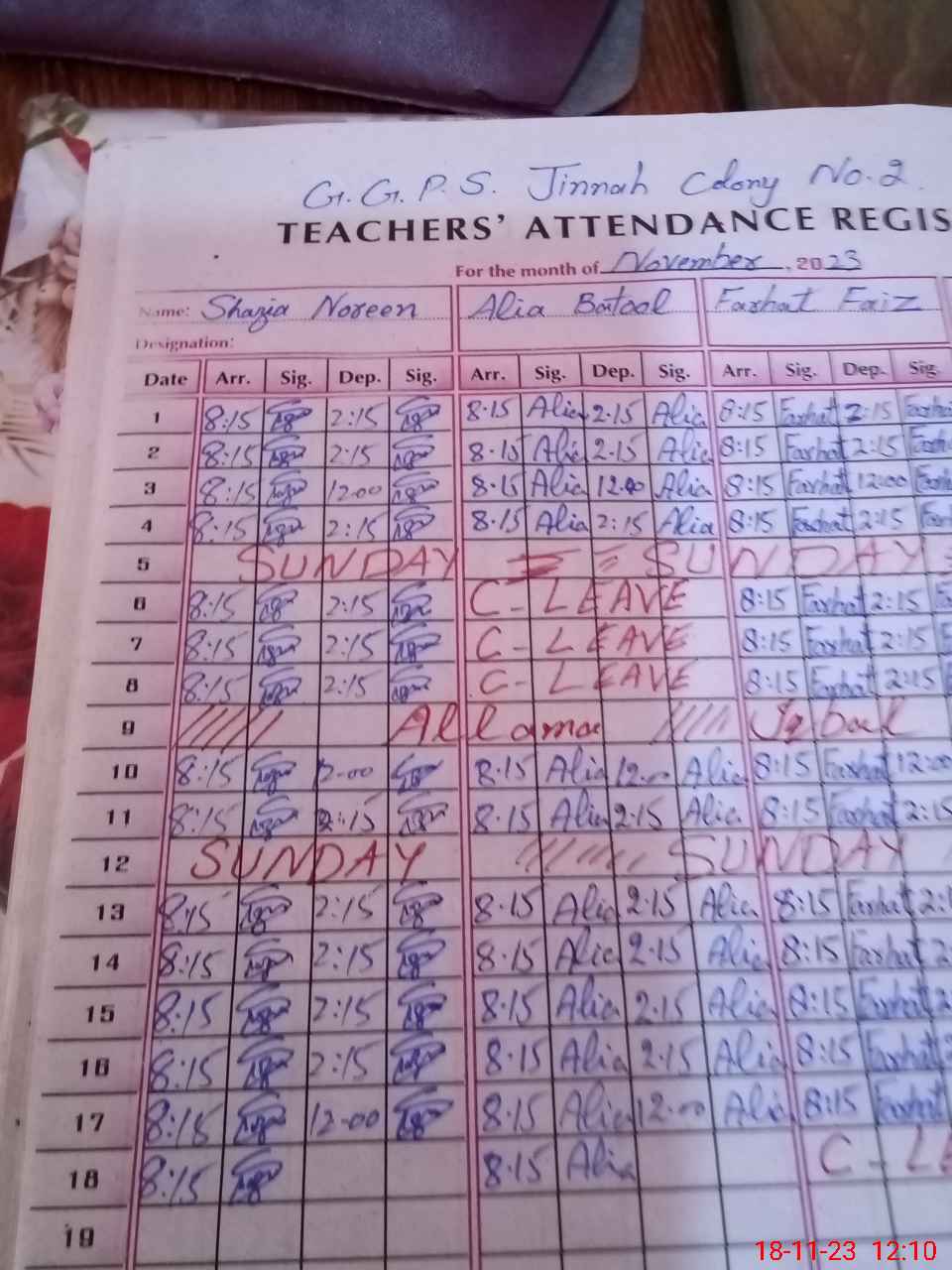 | CNIC | Full Name | Designation | R/C | Absence During Last Calender Month |