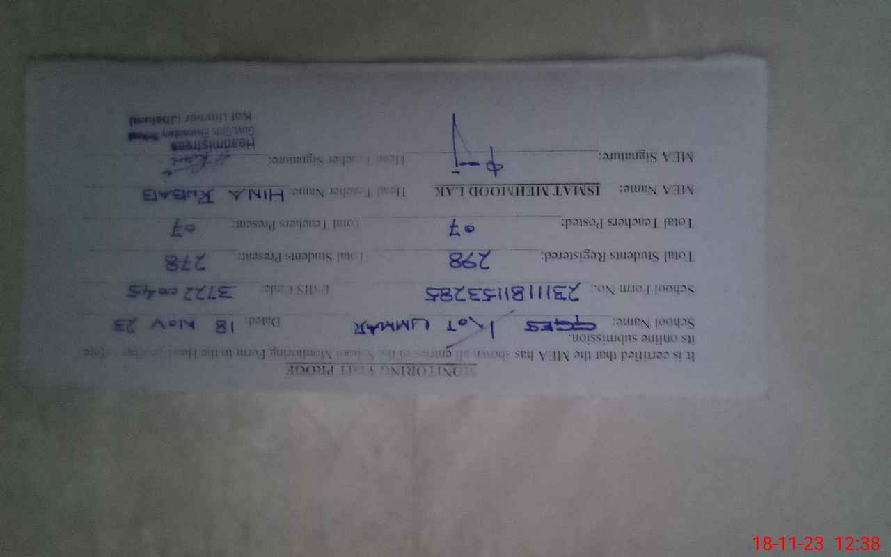 | EMIS Code: 37220045 | Name of School: GGES KOT UMMAR | |||