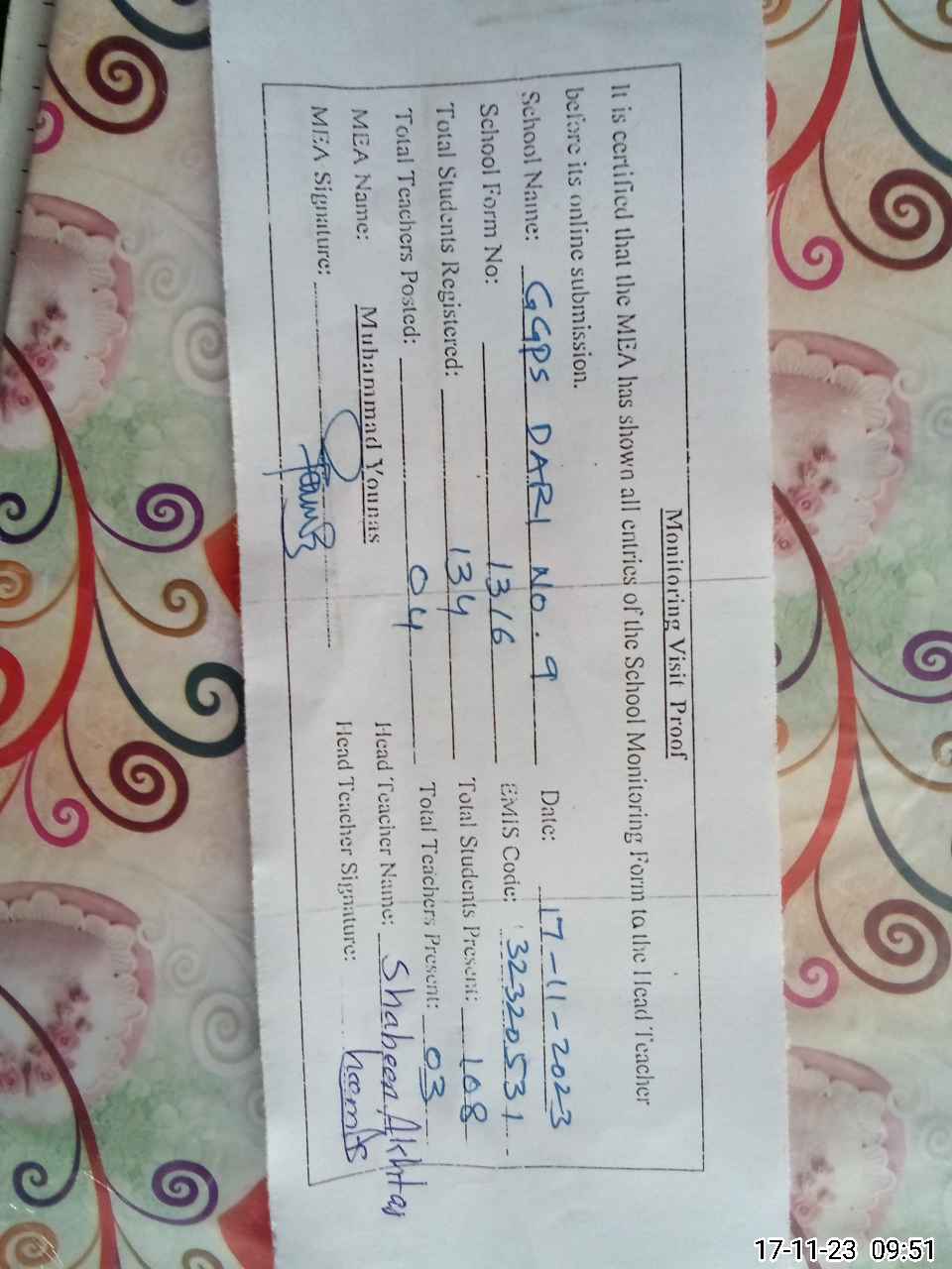 | EMIS Code: 32320531 | Name of School: GGPS DARI NO. 9 | |||