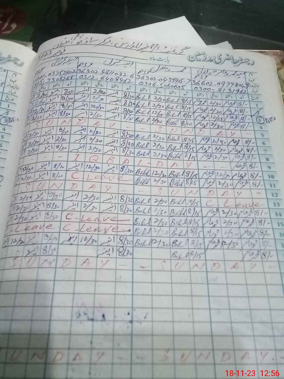 | CNIC | Full Name | Designation | R/C | Absence During Last Calender Month |
