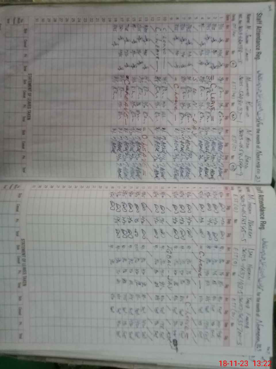 | CNIC | Full Name | Designation | R/C | Absence During Last Calender Month |