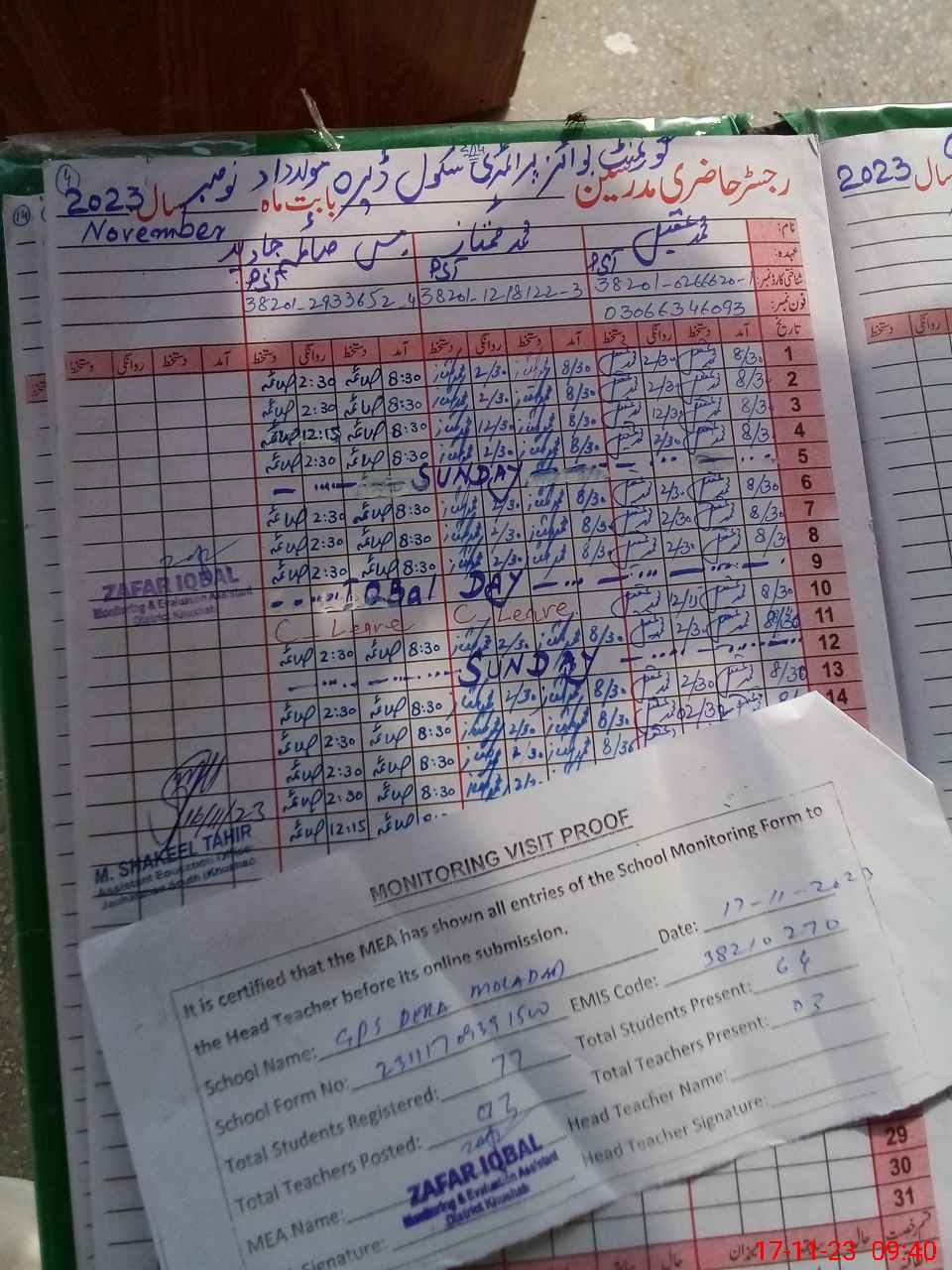 | EMIS Code: 38210270 | Name of School: GPS DERA MOLADAD | |||