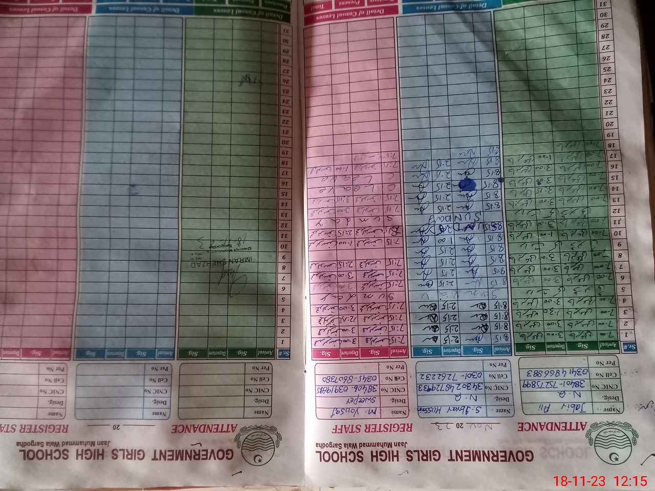 | CNIC | Full Name | Designation | R/C | Absence during last cal. month |