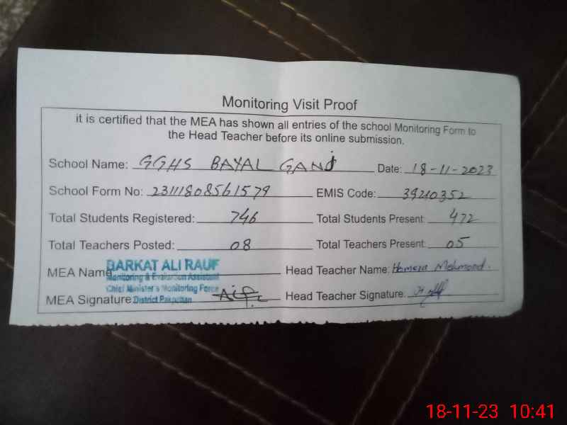 | EMIS Code: 39210352 | Name of School: GGHS BAYAL GANJ PAKPATTAN | |||