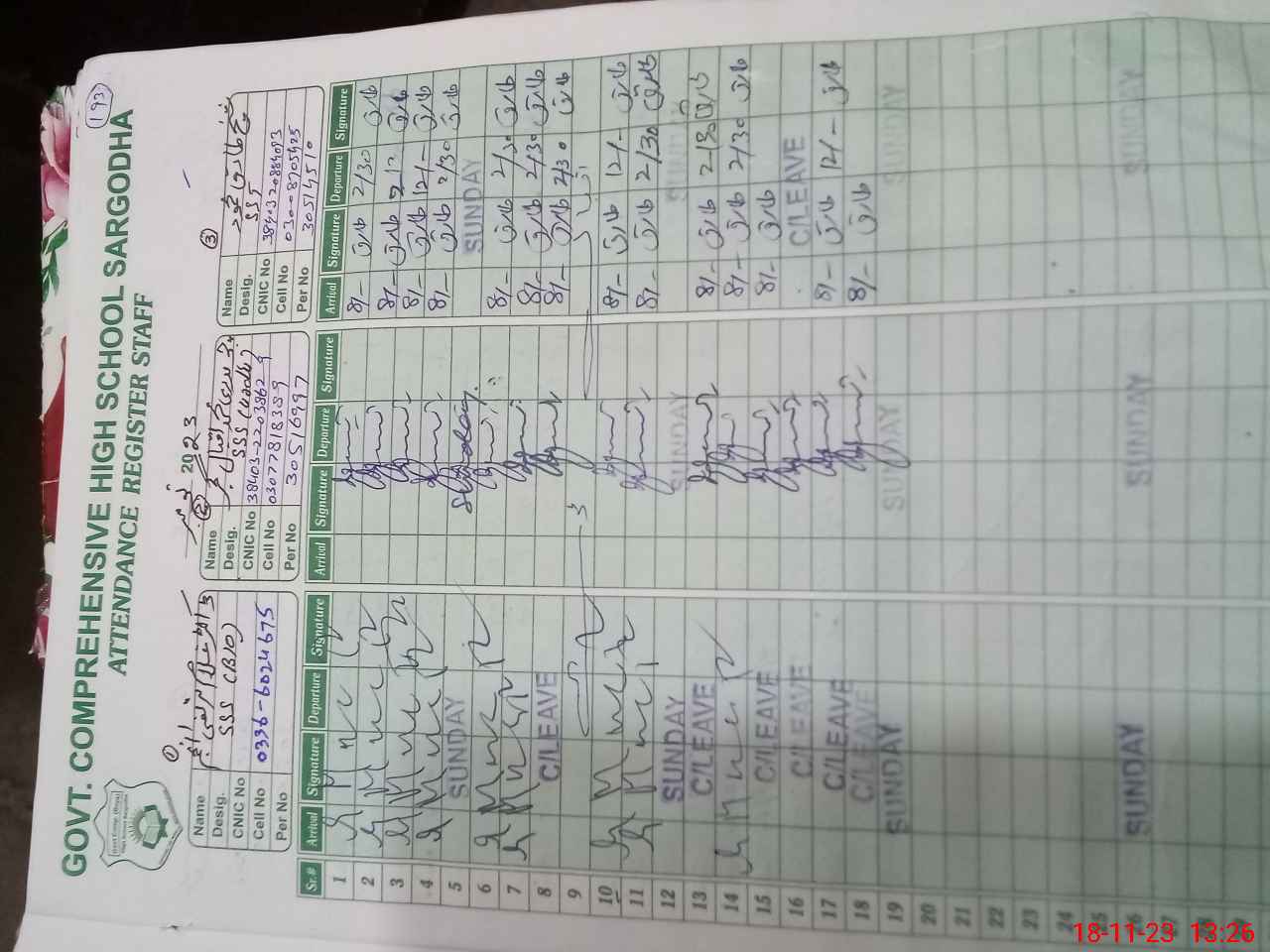 | CNIC | Full Name | Designation | R/C | Absence During Last Calender Month |