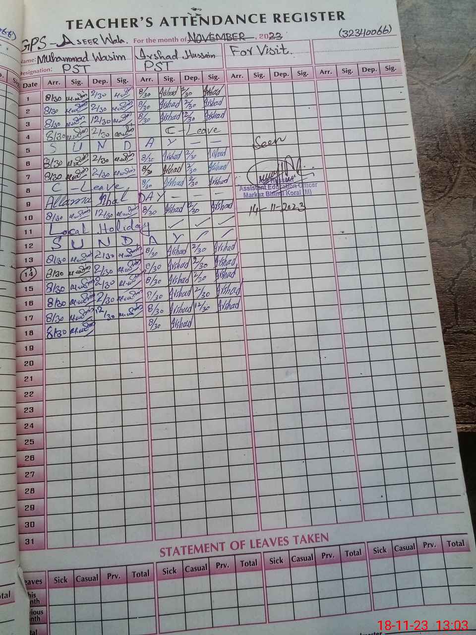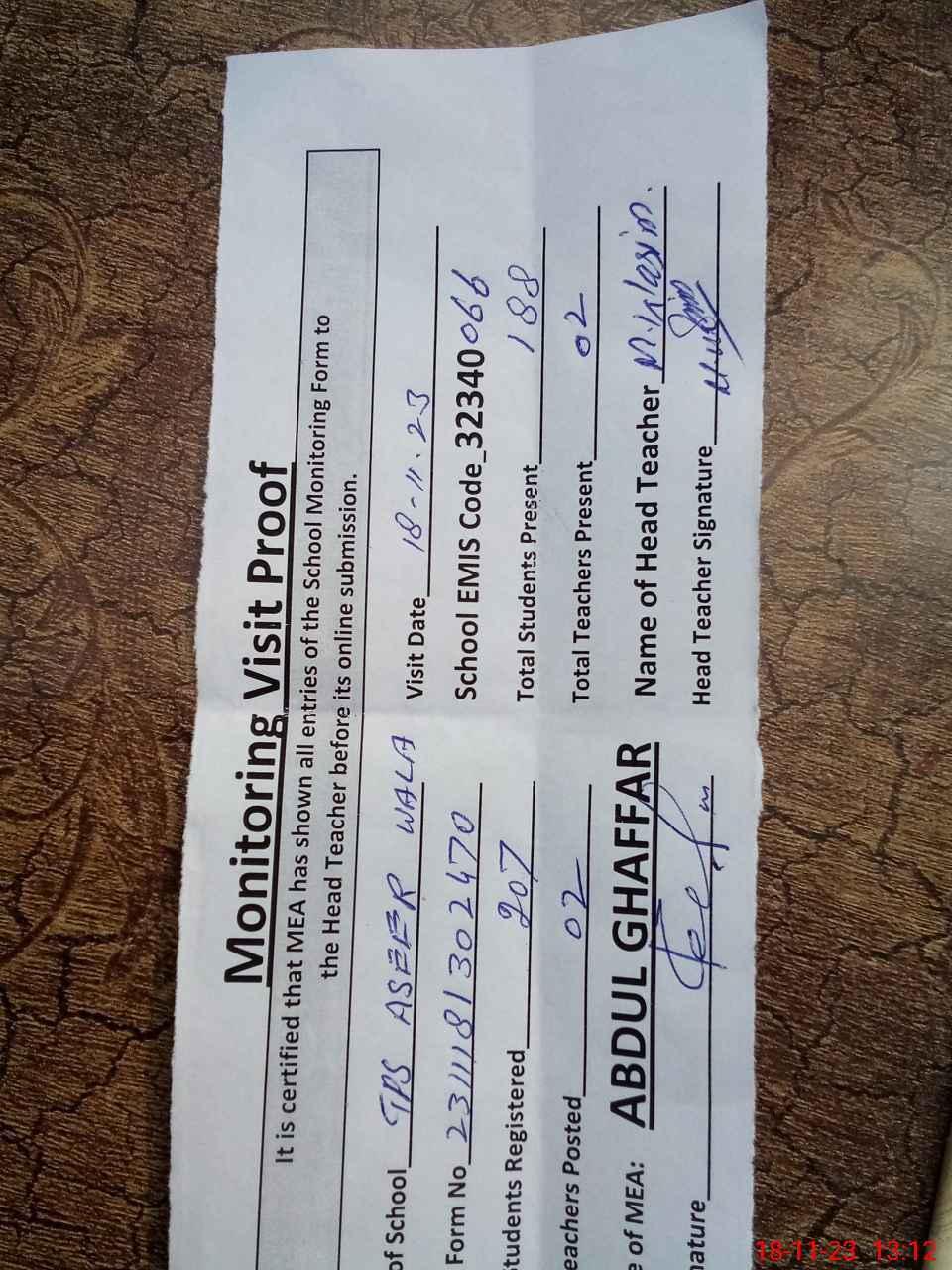 | EMIS Code: 32340066 | Name of School: GPS ASEER WALA | |||