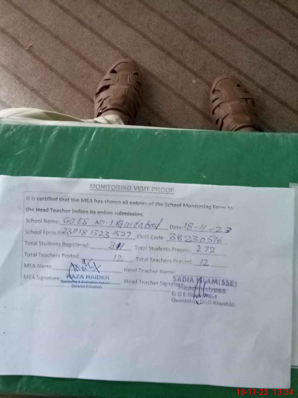 | EMIS Code: 38230576 | Name of School: GGES NO. 1 QUAIDABAD | |||