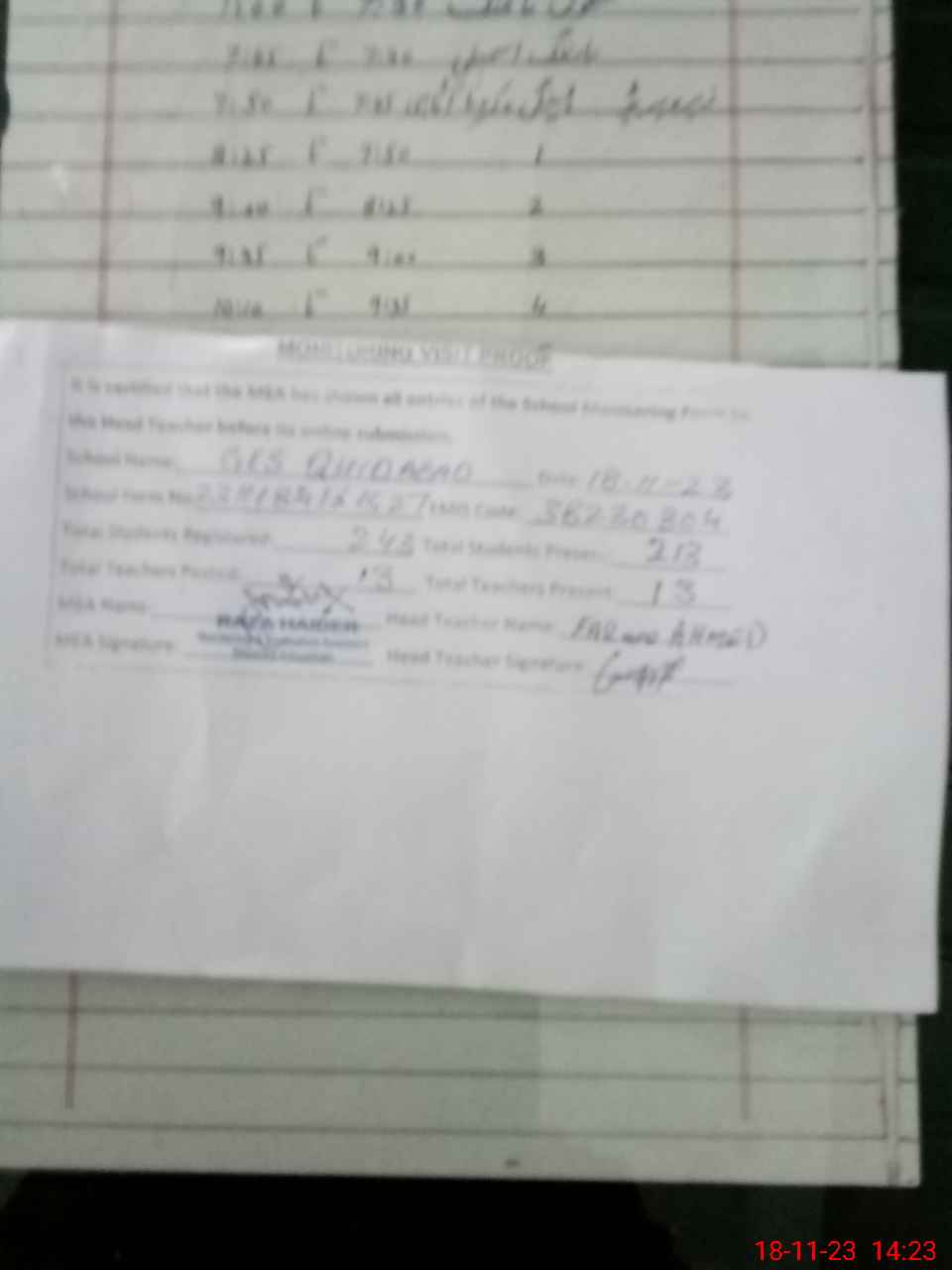 | Name: FA**** AH**** Designation: (School Headmaster's/Headmistress's) SSE Phone/Cell Number: 03**** |