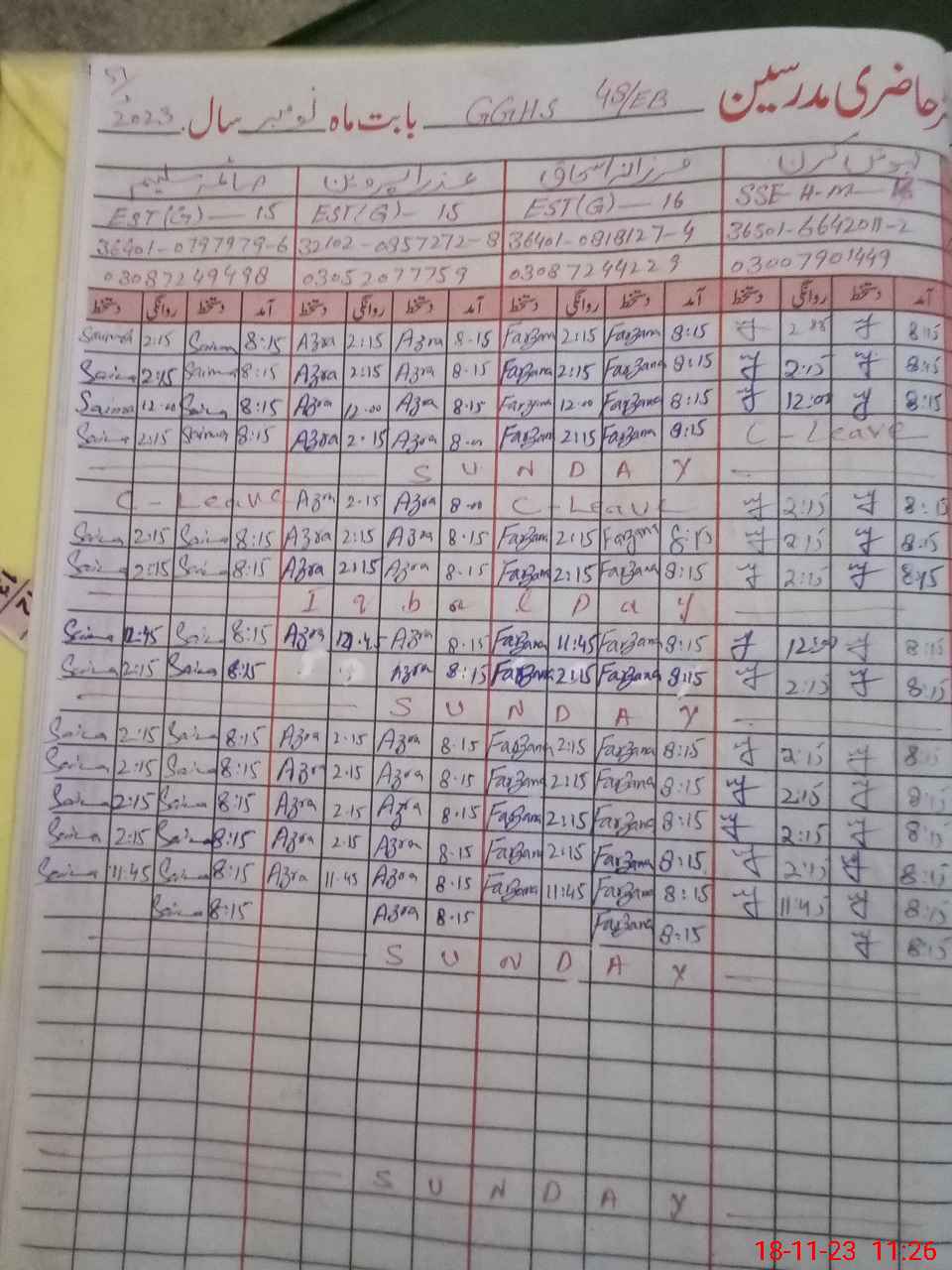 | Name: ME**** KI**** Designation: (School Headmaster's/Headmistress's) S.S E (ENGLISH) Phone/Cell Number: 03**** |