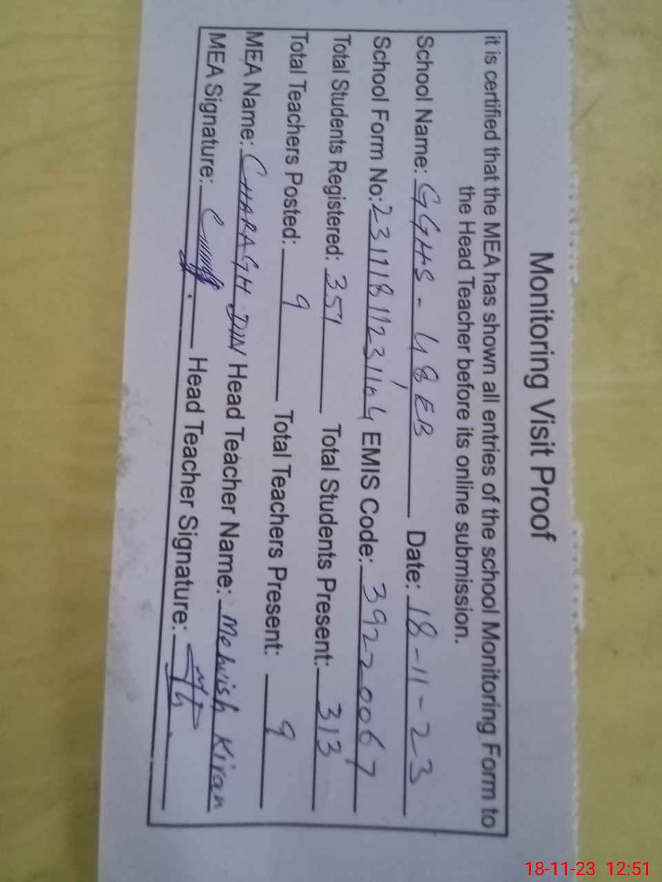 | EMIS Code: 39220067 | Name of School: GGHS 48 EB | |||