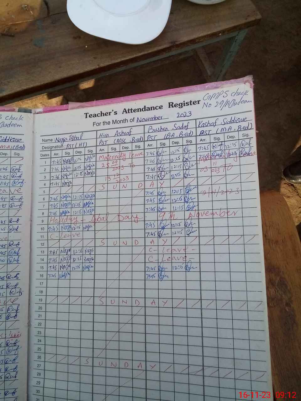 | Monitoring Date: 16-11-2023 | Start Time: 16-11-2023 08:29 AM | End Time: 16-11-2023 09:34 AM | Name of MEA: Mu**** Sa**** Ul**** Sa**** | |