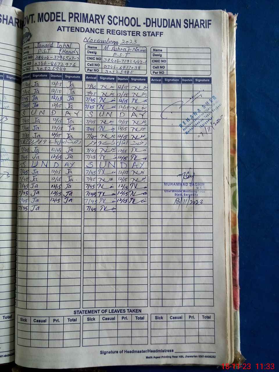 | Name: JA**** IQ**** Designation: (School Headmaster's/Headmistress's) PST Phone/Cell Number: 03**** |