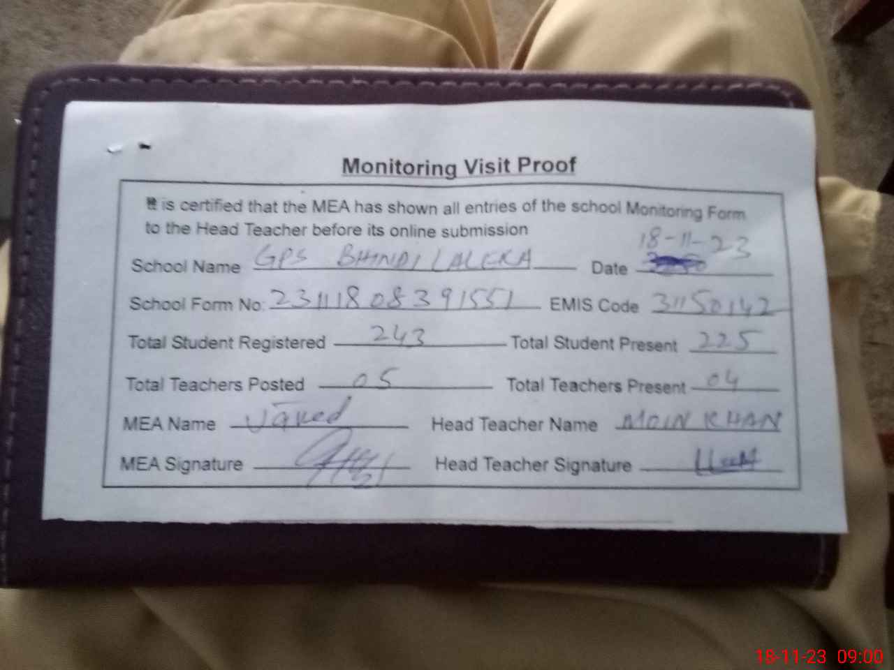 | Certified that this School was Inspected by the Undersigned MEA/DMO Today and the Information Stated Above is as Per Record. | |||||