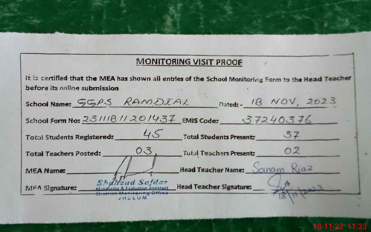 | EMIS Code: 37240376 | Name of School: GGPS RAMDIAL | |||