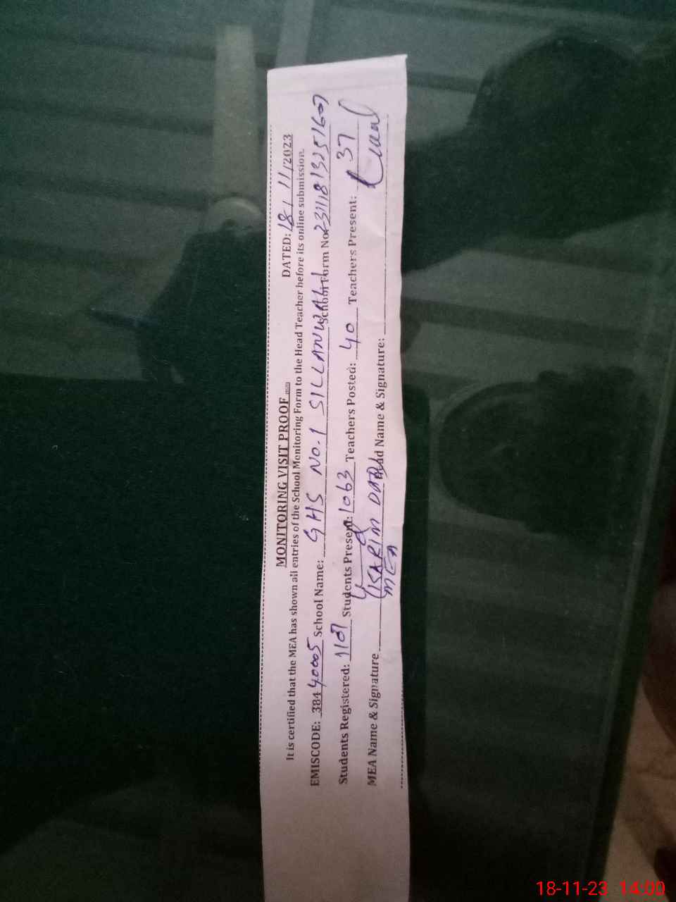 | EMIS Code: 38440005 | Name of School: GHS NO.1 SILLANWALI | |||
