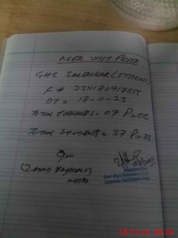 | Attendance Register | Head Teacher | MEA with School | Visit Proof |